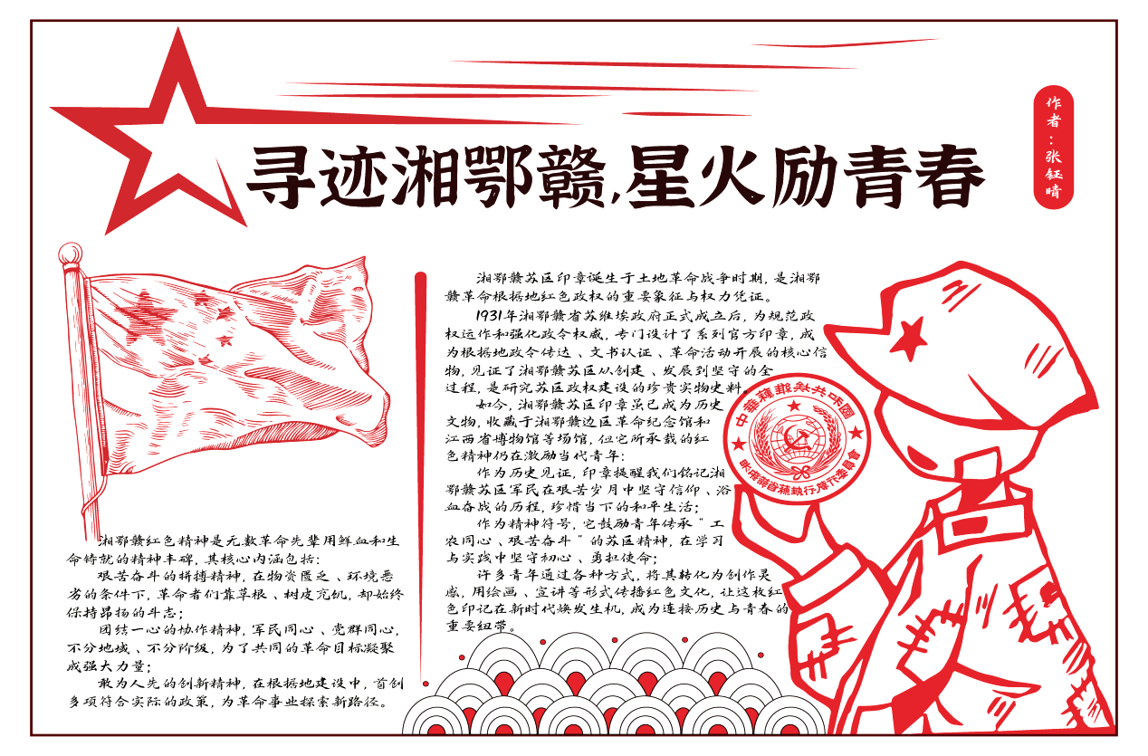 透过湘鄂赣革命纪念馆的玻璃展柜,我与一枚红色印章进行了一场无声的对话。它静默无言,却诉说着那段风雨如磐的岁月。我思考着,当年手持这枚印章的,是怎样一群热血青年?这抹红色,是他们的信仰,也是穿越时空传递给我们的精神火种。作为新时代的学生,这次“云游”是一次深刻的洗礼。这枚印章,如同精神的接力棒,提醒着我们不忘来路,砥砺前行。