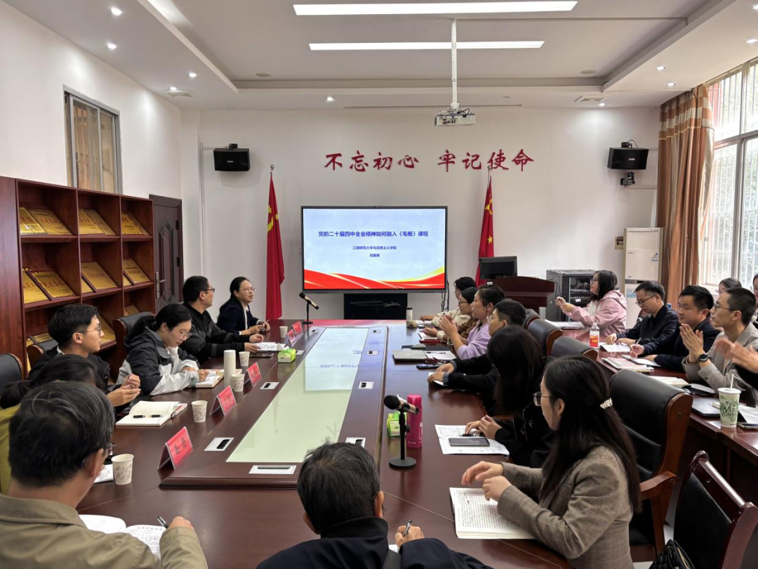 在备课导学环节,江西师范大学马克思主义学院邓美英副教授开展专项教学指导。围绕党的二十届四中全会精神与“毛概”课程的系统融合,邓教授从多个维度拆解具体融入路径并给出针对性教学建议,同时就“邓小平理论”等专题内容与课程体系的有机衔接分享实践见解。这一指导既帮助“毛概”课教师精准把握教材核心、厘清教学逻辑,为讲深讲透讲活思政课提供了新思路、拓展了新视角。邓教授特别叮嘱,思政课教师要跳出“知识灌输”的局限,引导学生从对理论的已知、熟知走向内化于心的真知,进而激发主动探索未知、钻研新知的热情,让思政课真正成为启迪思想、引领成长的关键课程。