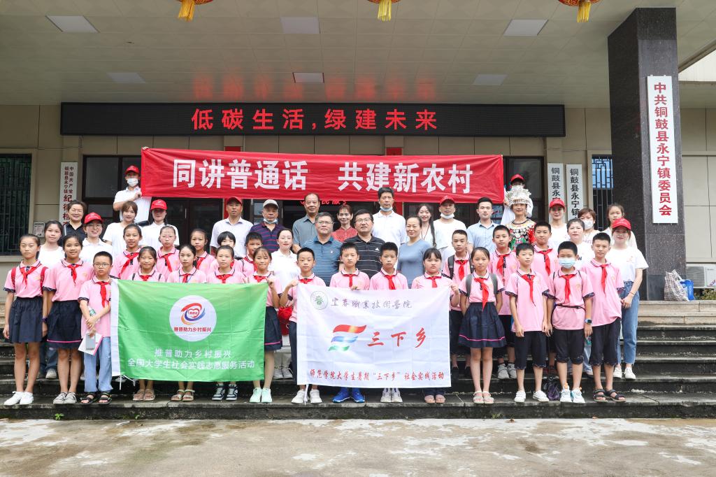 本站讯(师范学院 杨文姝)为积极响应教育部和团中央的号召,推广普通话,助力乡村振兴,8月27日,师范学院“用心吐字 用爱归音”社会实践队一行17人前往宜春市铜鼓县,开展以“推普助力乡村振兴 送教致敬建党百年”为主题的“三下乡”社会实践活动。