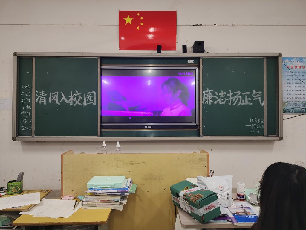 本次活动通过观看廉政微电影《家风》与《迷途》廉洁主题微电影这两个视频,让清政作风走进校园,浸润同学们的心田。活动过程中,同学们端正坐姿,认真观摩。视频中警察叔叔“廉洁一生,公正一生;廉洁从警,修身齐家”的铮铮誓言以及有趣又发人深省的小短剧,都在同学们心里种下了“廉洁”的种子。观影后,各班班长还带领同学们发表了自己深刻的感受和看法,同学们积极发言,纷纷表示在今后的学习生活中,他们将植廉于心,践廉于行,保持廉洁诚信,促清家风、校风、学风,以扬时代正气之风。