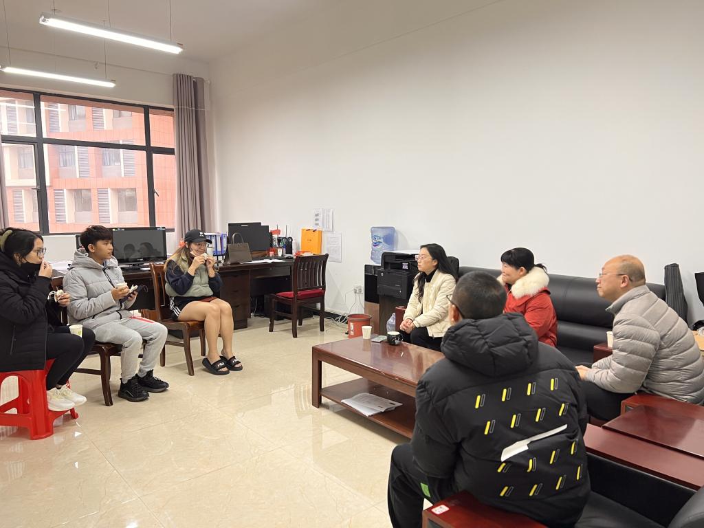 本站讯(师范学院 杜严)疫情散去,春归如约。2月8日,师范学院迎来了2021级学前教育专业的三位马来西亚留学生。这是三位留学生第一次线下返校,继续学业。学院领导班子亲切看望留学生,并同他们开展座谈会。