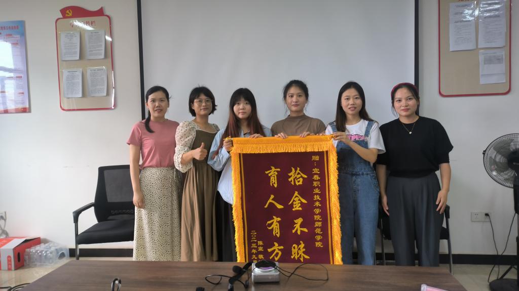 本站讯(师范学院 杨健)开学迎新之际,师范学院学前教育22214班付文艺、何姝媛、付佳轩同学捡到一个钱包,内有少量现金、各类证件等物品,三人上交学院并告知捡到钱包的事情经过,学校多方打听及时联系到了失主,9月14日终于物归原主——移动公司工作人员陈宣,失主陈女士表示非常感谢,此时三位学生脸上绽放出了最真诚灿烂的笑容。为此,学院对付文艺、何姝媛、付佳轩三位同学的行为提出表扬,同时向全体学生发出倡议,希望全体师生学习付文艺、何姝媛、付佳轩拾金不昧的优良品格。