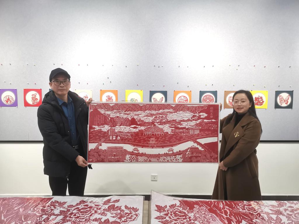 讲座中,陈杵保从剪纸的来源与发展,剪纸的当代价值等方面入手,给同学们作了深入浅出的讲解,并展示了很多个人剪纸获奖作品,激发了同学们对剪纸的兴趣,大家纷纷表示希望可以对剪纸进行更深入的了解。陈杵保幽默风趣的讲座得到同学们的热烈反响。讲座结束后,院党总支书记邹晓英为陈杵保颁发师范学院非物质遗产工作室特聘专家聘书,陈杵保向师范学院赠送大型剪纸作品《锦绣三都》,并对剪纸非遗传承工作室进行指导,后期将进行更深入的合作交流。