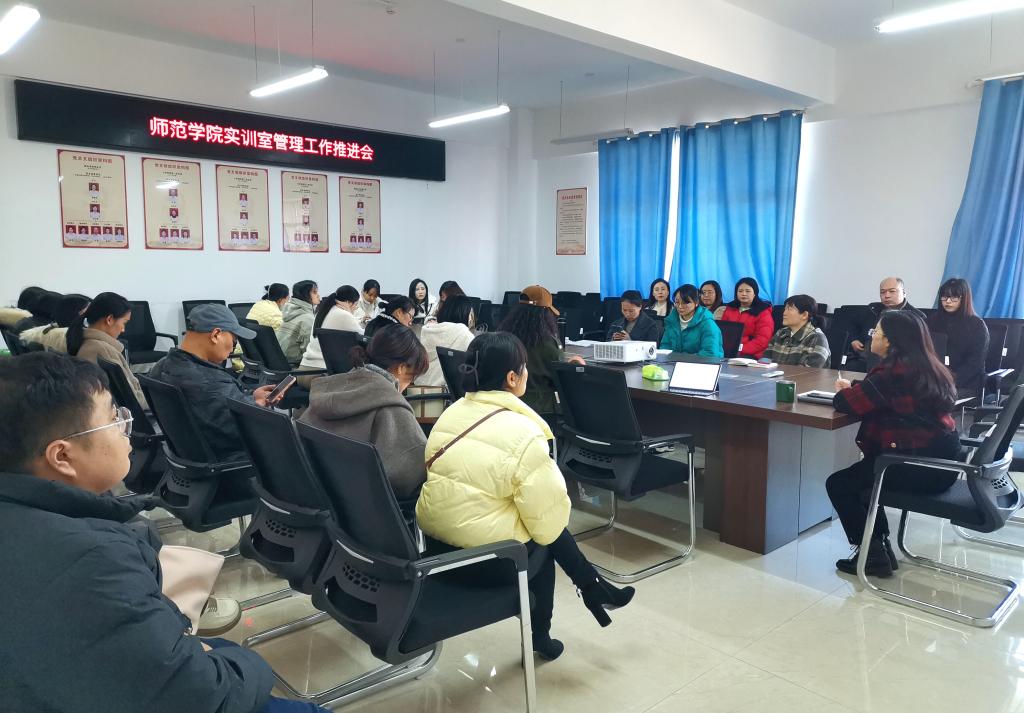 本站讯(师范学院 郭国祥)111日,师范学院在正心楼B204会议室召开实训室管理工作推进会,会议由院党总支书记邹晓英主持,各教研室主任和实训室负责教师参会。