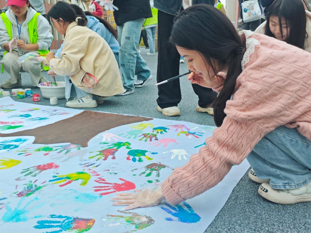 在“落叶签到”“捡秋天”“给秋留个印记”等环节中,同学们对秋天这一独特的意象“落叶”进行创作,描绘出自己心中独一无二的胜春秋华。“扇出七彩秋”环节,同学们纷纷动起手制作漆扇,体验这项独特的非遗技艺,并在实践体验中真切感受到中华优秀传统文化的无穷魅力。在“‘筝筝’日上”环节,怀揣着美好愿景的同学们在现场工作人员的帮助下放飞风筝,大家的憧憬和希望随着风筝向远方启航。