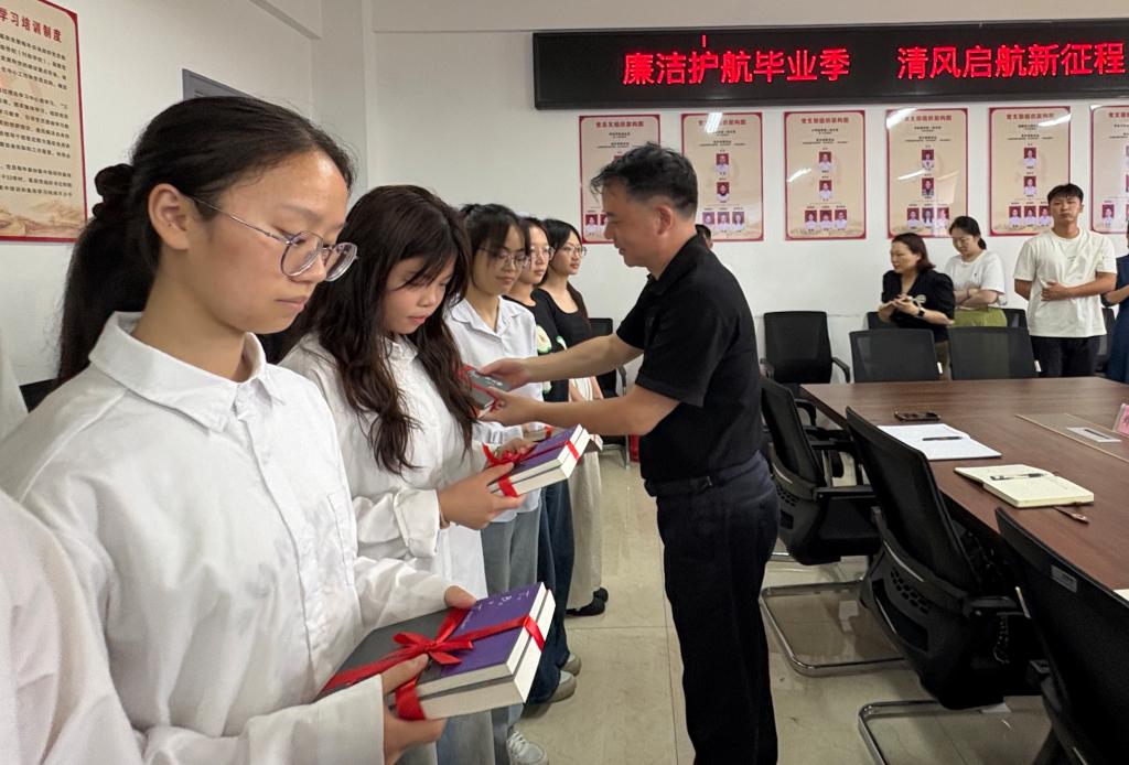 刘平涯代表学校纪委为参加活动的所有同学赠送了廉洁教育书籍,以书本承载对学子们的殷切期望,帮助大家更好地领悟廉洁的内涵。随后,他深刻阐述廉洁从教的时代意义,分享典型案例,对在场的师生提出“筑牢信仰之基、严守纪律底线、涵养师德匠心”的期许,语重心长,发人深省。