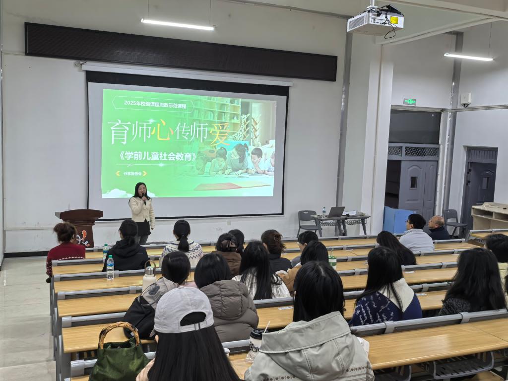 随后,尹欣以《育师心传师爱——<学前儿童社会教育> 课程思政建设实践与探索》为题,结合其团队省级教学能力大赛获奖作品的创作思路,从“课程基本情况、思政总体设计、教学实践推进、评价成效展现、特色创新亮点”五个方面,全方位分享了课程思政建设的宝贵经验。