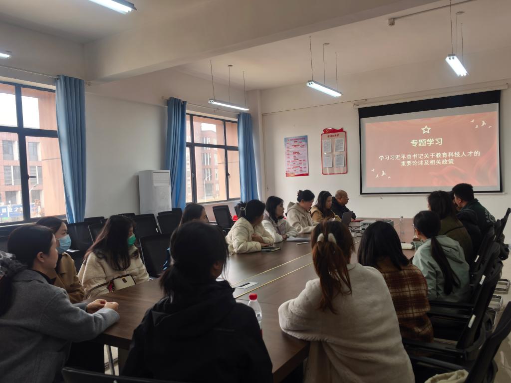 党总支书记邹晓英以“教育筑基、科技赋能、人才领航”为脉络,领学习近平总书记关于教育科技人才一体化发展的重要论述,党员们围绕“师范教育如何对接科技革命、培养创新人才”开展集中研讨,分享教学实践中的探索与思考。