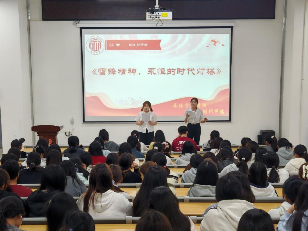 本站讯(师范学院 王焕 学生记者 黄建晔 苏婧琳)为深刻把握雷锋精神内涵,引导学生将服务人民、助人为乐的奉献精神融入未来教育事业,10月30日晚上,师范学院在正心楼A108教室举办“赓续雷锋精神铸就时代师魂”主题朗诵比赛。