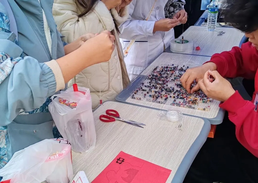 本站讯(团委 曹招 刘嘉妮 王玮 学生记者 邹欣宇 鲁思甜)为迎接小雪节气的到来,弘扬中华优秀传统文化,增强学生对传统文化的认同感和自豪感,11月22日下午,由校学生会主办,护理学院学生会、机电与新能源汽车学院学生会协办的“初雪轻舞,小雪之临——邂逅冰雪世界的浪漫盛宴”活动在西区日新楼前举行,该活动面向全体师生。活动开始后,许多同学都积极参与其中,在“妙手珠连”的活动中,新颖的宣传方式吸引了不少同学的目光,同学们用自己的巧手DIY出独一无二的五彩手串,场面一度热闹非凡;在“剪纸霜花”的场地前,同学们剪出了一朵朵美丽的霜花,为自己留下小雪节气的习俗印记。在“巧解九连环”的活动现场前,同学们面对40种九连环智力扣,展现出自己的聪明才智,有些同学才思敏捷,短时间内就将其解开;在雪花知识问答的环节上,同学们博学多闻,知识储备丰富,一路过五关斩六将。