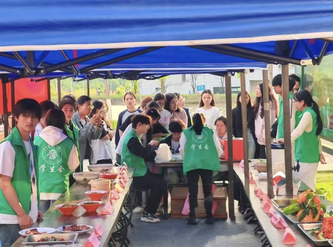 本站讯(团委 张为岷 刘嘉妮 王玮 学生记者 曾雅萱 汤包根)在大学校园里,美食不仅是满足味蕾的享受,更是校园文化的独特符号。为弘扬中华饮食文化,丰富同学们的课余生活,4月25日下午,“‘食’力出圈,校园美食争霸赛”美食品鉴活动在学校东西区食堂门口火热开启。活动筹备阶段,工作人员分工明确、有条不紊。他们精心将参赛菜品划分为汤粉、菜肴、甜品、小吃四大类别,仔细为每道菜品编号,依照次序陈列摆放。同学们依次排队领取一张投票纸,开启美食品鉴试吃之旅。试吃过程中,大家一边品尝着各式各样的美食,一边交流着对不同菜品的感受。品尝结束后,同学们慎重地在投票纸上写下心目中最美味、最具特色菜品的序号,投入投票箱。最终,工作人员进行统票,翠珠鱼花、乌干菜烤基围虾、慈化鸡、爆汁咕咾肉、糖醋排骨等十位的菜品脱颖而出,获得象征着荣誉的“有‘食’力”锦旗。