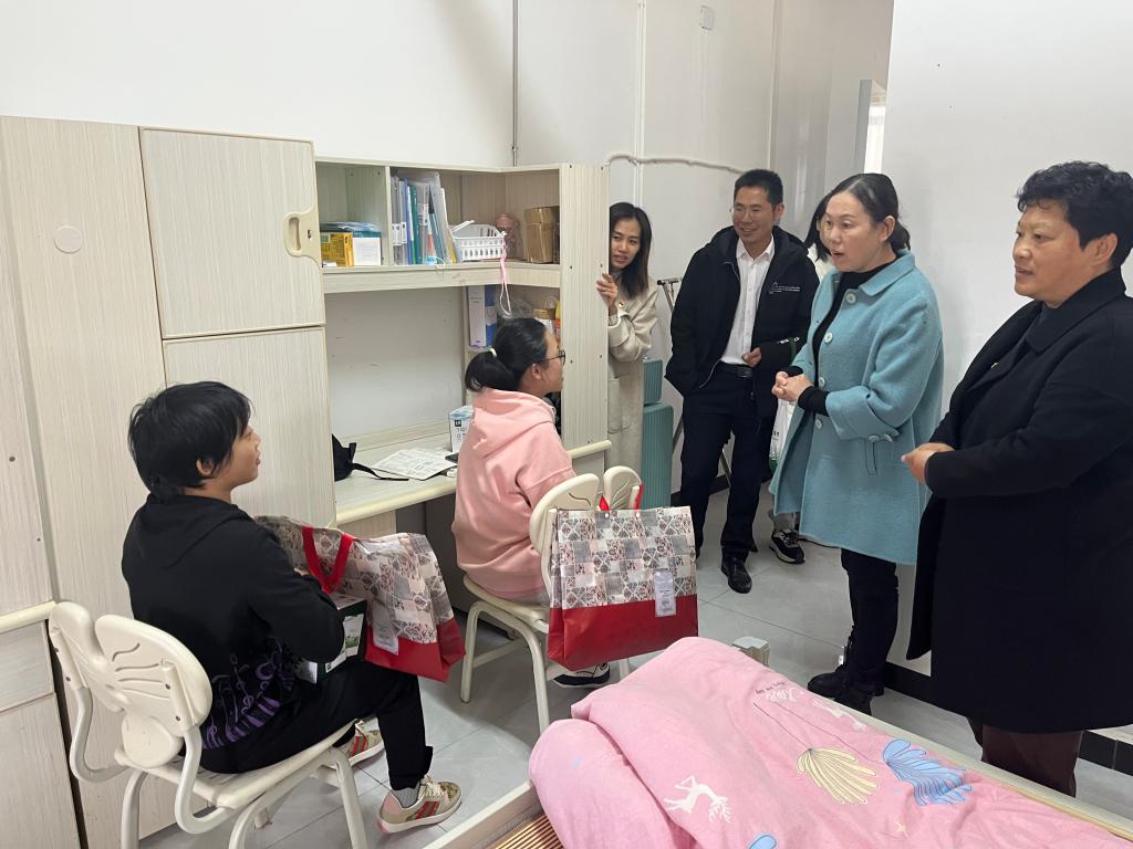 本站讯(机关第六党支部 刘思敏)气温骤降,微雨带寒,机关第六党支部党员们无时无刻不牵挂着住在无障碍宿舍的4位特殊学生。为了解特殊学生的学习、生活状况,帮助他们解决实际困难,11月16日中午,机关第六党支部部分党员与丹田物业公司保安部主管王魁在校党委委员、副校长刘叶建的带领下,来到了雅园、静园的无障碍宿舍,走访慰问特殊学生。