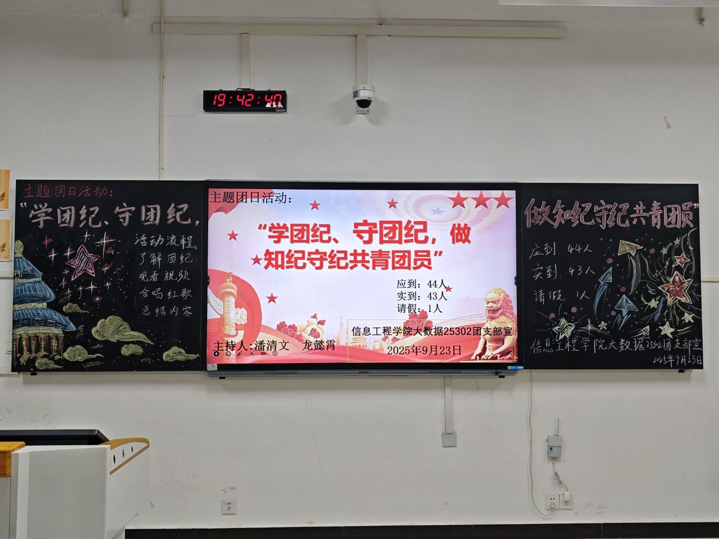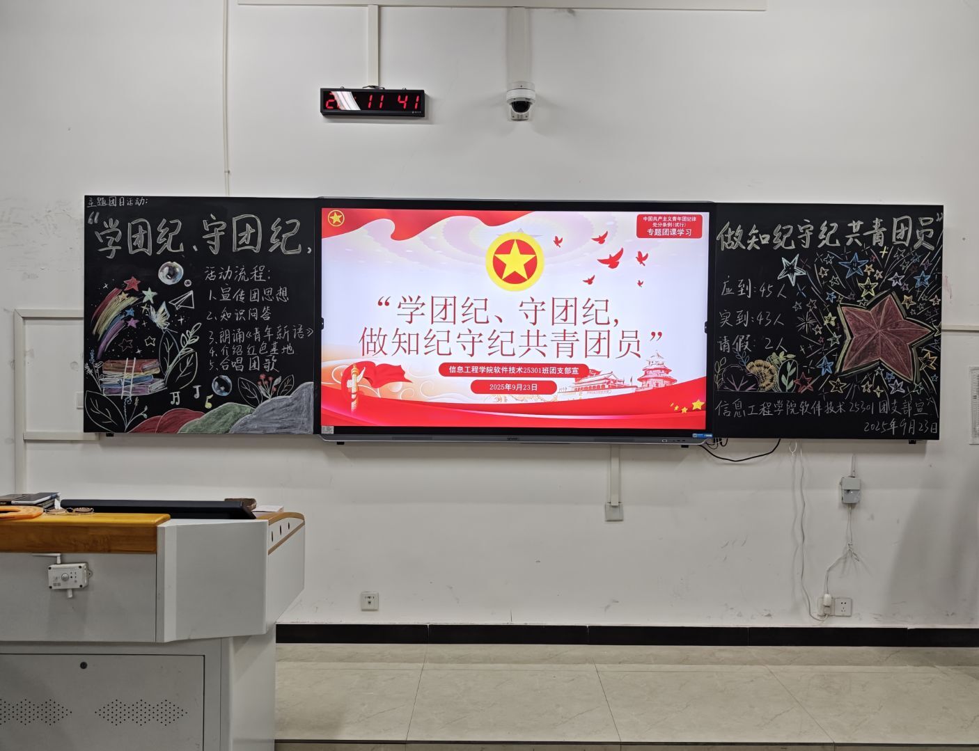 为进一步强化团员纪律意识,筑牢纪律规矩防线,持续深化青年思想政治引领,全面夯实青年政治素养根基,着力锻造政治坚定、纪律严明、作风过硬的新时代共青团员队伍,9月23日晚,信息工程学院各班级团支部在和济楼、智云楼开展学团纪、守团纪,做知纪守纪共青团员主题团日活动。
