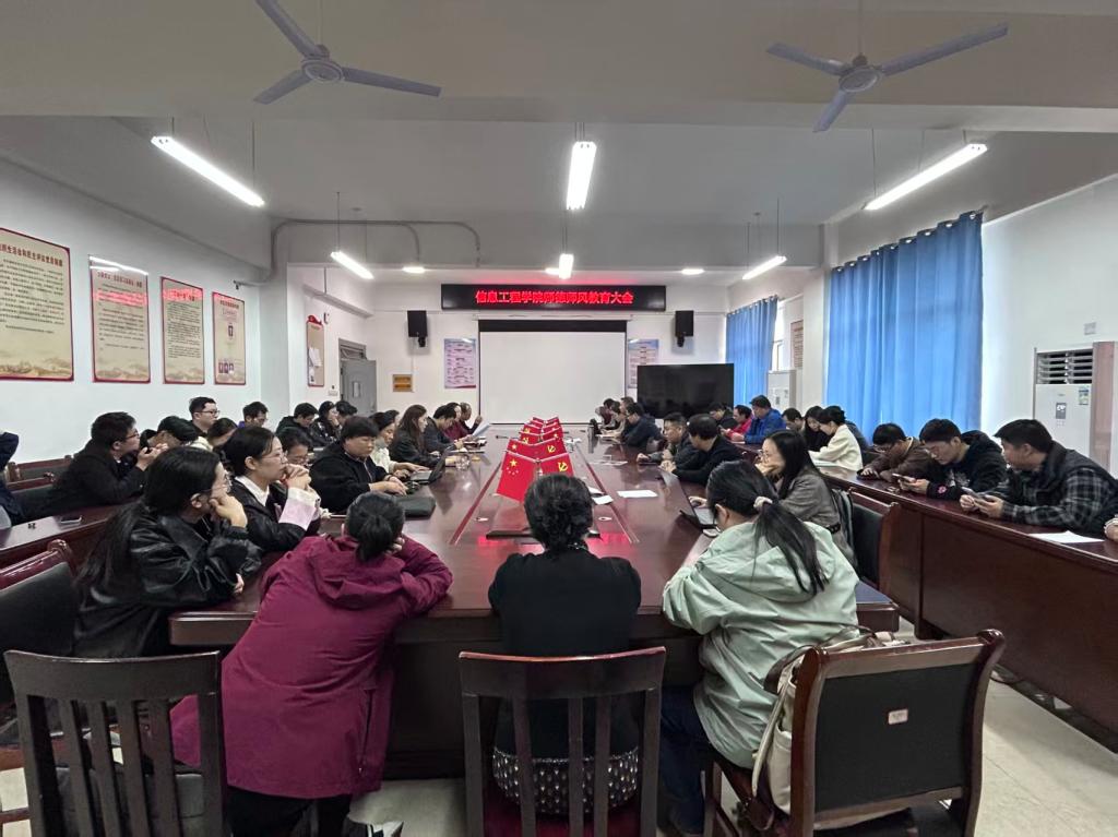 本站讯(信息工程学院王乐)为强化师德师风建设,11月4日,信息工程学院在智云楼B501召开师德师风专题教育会。会议由院长简靖韡主持,全体教职工参加。
