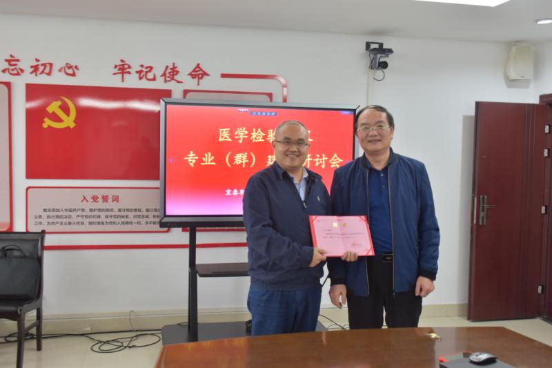 讲学结束后,王教授参加了“医学检验技术专业(群)建设研讨会”,副校长刘军出席,医学院领导班子、医学检验技术专业教师到场,就专业建设、教学方法、学生培养以及青年教师的成长进行了密切的交流。最后,副校长刘军为为王教授颁发担任买球官网医学检验技术专业建设指导委员会主任委员、买球官网医学检验技术专业(群)专业带头人聘书,感谢优秀校友对母校学生的发展给予的引领和帮助。医学院检验技术专业教师夏黎明说到,王教授曾经是我的大学老师,阔别9年再次见到他,依旧是记忆中的模样,亲和爽朗。我们大学那时王老师的求学经历早已成为了一段传奇佳话,知识渊博的他,激励着我们在求知的路上不断进取。