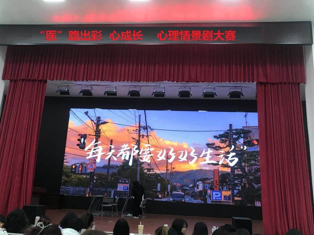 为贯彻落实党的二十大精神,做好青年工作,加强学院心理健康教育工作,推进学生心理素质全面提升,4月25日晚,医学院在仁济楼小礼堂举办“‘医’路出彩 心成长”心理情景剧大赛,院党总支副书记黄慧精、学生工作党支部书记孙智清、学工科科长李灿、学院辅导员及400余名医学院学生参加活动。