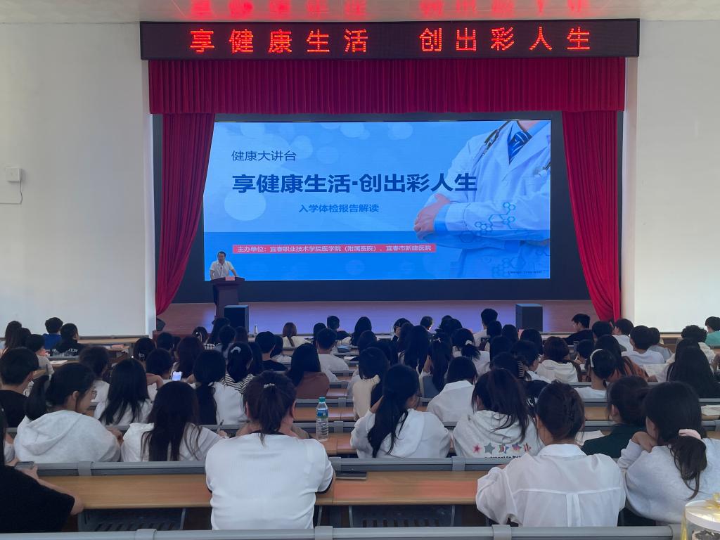买球官网新生入学体检已圆满完成,为让同学们更全面了解自身身体状况,加强疾病防控意识,养成良好卫生习惯,10月17日下午,医学院(附属医院)在仁济楼小礼堂举行“享健康生活,创出彩人生”2023级新生健康知识专题讲座。讲座由副院长袁经永主持,全校200名新生代表参加。讲座特邀宜春市新建医院医疗安全副院长李芊、呼吸科副主任医师杨维西为大家授课。