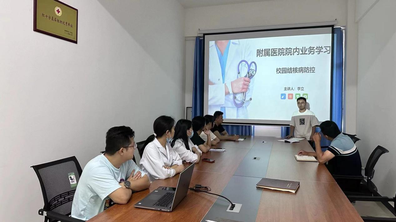 为提高全体医务人员对结核病防治的认识与应对能力,6月18日下午,医学院(附属医院)在日新楼会议室开展院内业务学习交流分享会。此次业务学习主题为“校园结核病防控”,由本院医师李立主讲,附属医院全体医务人员参加。