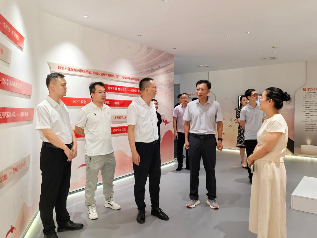 随后,朱振华一行参观了学校的生命科技馆,通过电子触屏讲解与VR技术的科技赋能,系统了解了人体九大系统的基本结构,直观地观察到健康与疾病状态下人体组织器官的大体表现与区别。在学生优秀作品展区,朱振华对学校将艺术创作与医学专业知识融合的育人方式表示了高度认可。