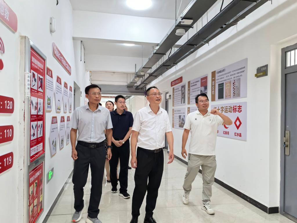 朱振华一行来到日新楼,参观宜春市高校红十字应急救护培训基地,详细了解培训基地功能设置情况和基地日常管理,重点了解学校近年来开展的各类应急救护教育活动以及取得的丰硕成果。朱振华充分肯定了学校红十字会的工作全面扎实、规范有效、形式丰富、内容充实,成效显著。